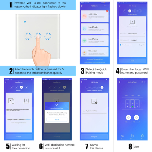 The touch switch panel supports maximum power of 2200W that can work with most lights and other electric appliances, it is also Compatible with iOS and Android OS.