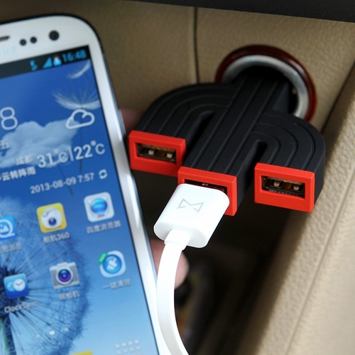 Three ports : 12 / 24 volt input compatible with all standard cigarette-lighter sockets. Three outputs allows to charge more devices at the same time. convenient for family use.