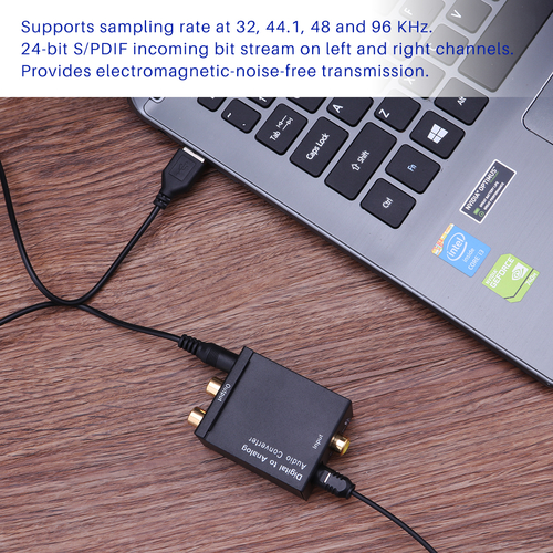 It converts Coaxial or Toslink digital audio signals to analog L/R audio .
